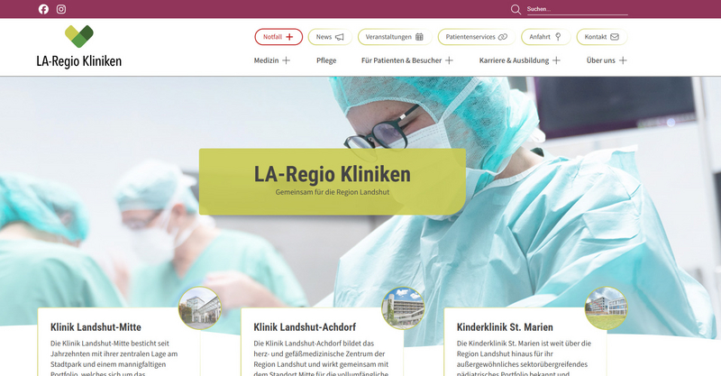 Die Startseite der neuen Webpräsenz der LA-Regio Kliniken wird demnächst erreichbar sein.